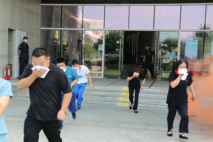 “濰坊市文化藝術(shù)中心消防演習(xí)現(xiàn)在開始!”,通訊聯(lián)絡(luò)組、后勤保障組、人員搶救組、滅火行動組、疏散引導(dǎo)組立即就位,煙霧升起、消防警報聲響起,演練人員用濕毛巾捂住口鼻、彎下身體,按照疏散路線快速、有序地疏散到了空曠區(qū)域,隨后,滅火行動組對火源進行滅火,被困人員模擬救出,整個演習(xí)用時15分鐘,演練活動緊張有序。