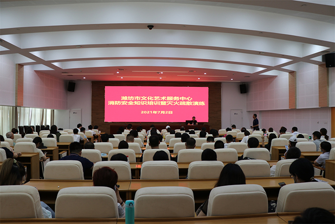 7月2日,濰坊市文化藝術(shù)中心與市消防救援支隊在城市規(guī)劃藝術(shù)館聯(lián)合舉行消防疏散演習(xí)及安全技能培訓(xùn),濰坊市文化藝術(shù)服務(wù)中心及各入駐單位主要領(lǐng)導(dǎo)、商戶代表共計200余人參加了本次消防演練。
