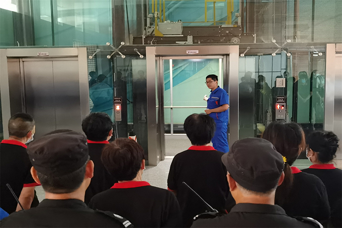 6月25日,魯臺會展中心項目進行消防演習(xí)及電梯困人救援演練。演練的主要內(nèi)容有:組織場館所有人員學(xué)習(xí)干粉滅火器的使用;室外消防栓開閉,消防水帶、槍頭的對接、鋪設(shè);遇火災(zāi)時的安全疏散;室內(nèi)消防報警器的使用和注意事項等;電梯出現(xiàn)故障時的應(yīng)急自救以及工作中出現(xiàn)電梯異常的解決辦法等。