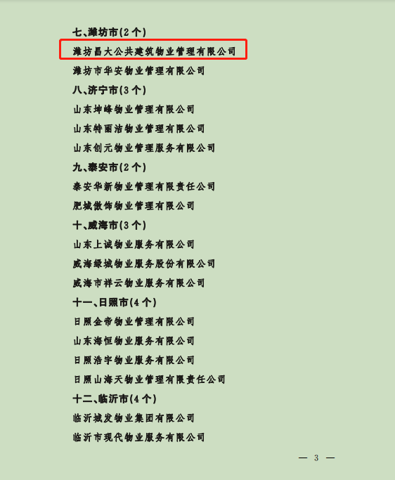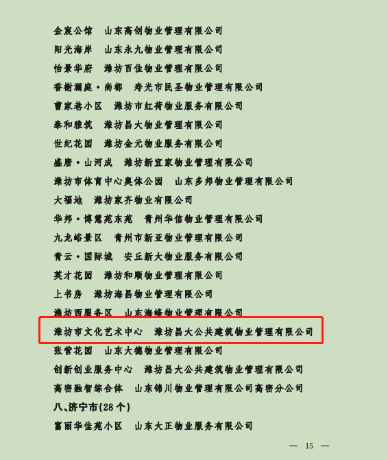 9月3日,山東省住房和城鄉(xiāng)建設(shè)廳公布關(guān)于品牌建設(shè)典型示范案例和“質(zhì)量標(biāo)桿”項(xiàng)目(第二批)名單,我公司作為品牌建設(shè)典型示范案例予以公布、服務(wù)管理的濰坊市文化藝術(shù)中心和峽山區(qū)創(chuàng)新創(chuàng)業(yè)服務(wù)中心同時獲得質(zhì)量標(biāo)桿項(xiàng)目。